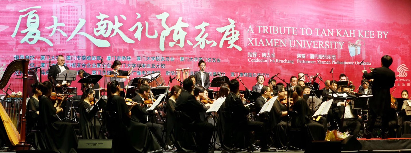 本次活动,企业家分会还特别邀请了厦门爱乐乐团同行,为马来西亚分校师生献上一场极具水准的交响音乐会。当深情磅礴的《陈嘉庚交响曲》在马来西亚分校陈嘉庚塑像前奏响时,仿若嘉庚校主带着荣光与激情,重返马来亚这片热土。音乐会后全场师生起立喝彩,掌声经久不息。
