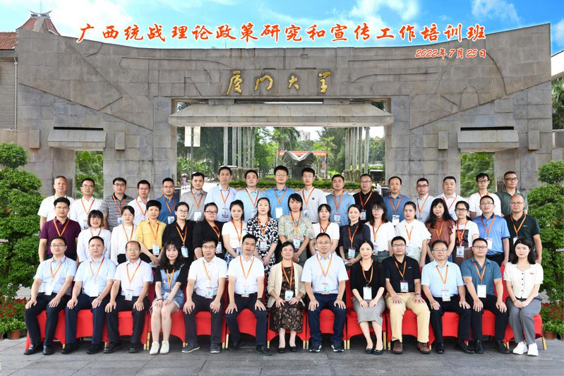 7月24日至30日,广西壮族自治区党委统战部在厦门大学举办“统战理论政策研究和宣传工作培训班”,来自自治区、市、县三级统战系统,部分区管本科高校,广西统一战线理论研究基地负责统战理论政策研究和宣传工作的46名业务骨干参加本次培训。