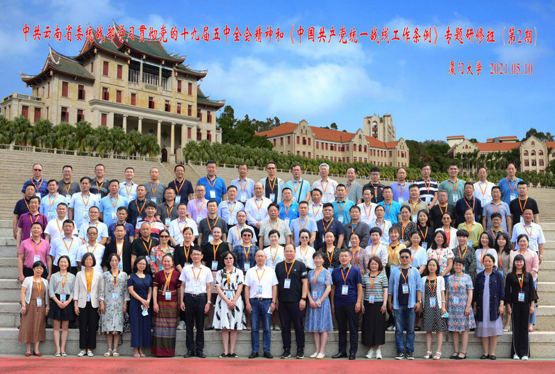 为深入学习十九届五中全会精神及中共中央新修订的《中国共产党统一战线工作条例》,进一步提升云南省统战干部综合素质,加强和改进组织工作能力,2021年5月10日,由中共云南省委统战部主办,厦门大学国际关系学院承办的“中共云南省委统战部学习贯彻党的十九届五中全会精神和《中国共产党统一战线工作条例》第二期专题研修班”顺利开班。