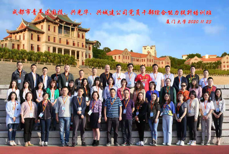 为进一步提升成都市青羊区国投、兴光华、兴城建公司党员干部综合素质,加强和改进组织工作能力,11月23日,由成都市青羊区国投建设发展有限公司、成都市兴光华城市建设有限公司、成都市兴城建实业发展有限责任公司主办,厦门大学国际关系学院承办的“成都市青羊区国投、兴光华、兴城建公司党员干部综合能力提升培训班”顺利开班。